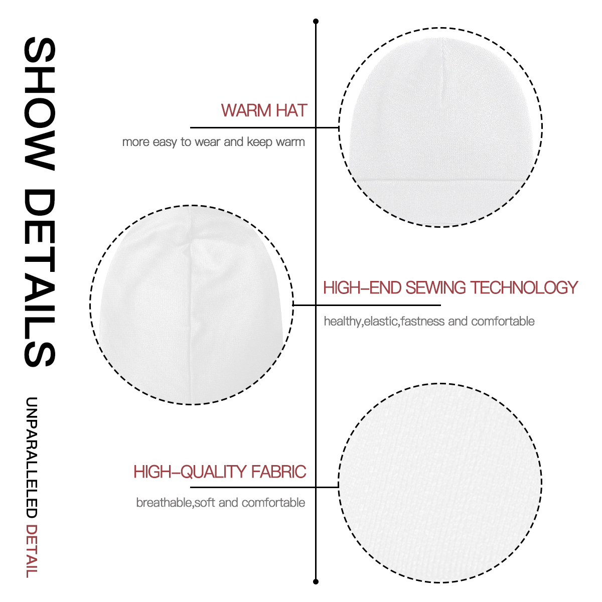 · أداء المنتج: مصنوع من قماش عالي المرونة، يتميز بقوام خفيف وناعم ومريح ومسامي ومرن. مناسب لمختلف أشكال الرأس. خفيف الوزن، سهل التشويه، سهل الحمل، أنيق في الارتداء، سهل العناية، كاجوال وعصري، وأنيق في الارتداء.